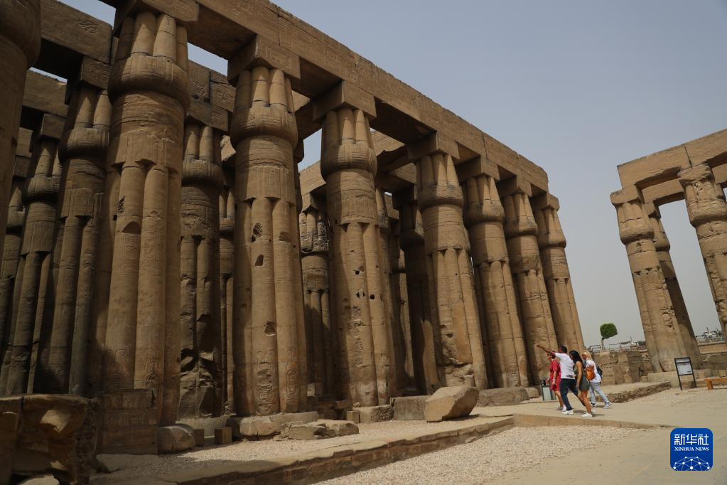 4月26日,游客在埃及卢克索神庙参观。