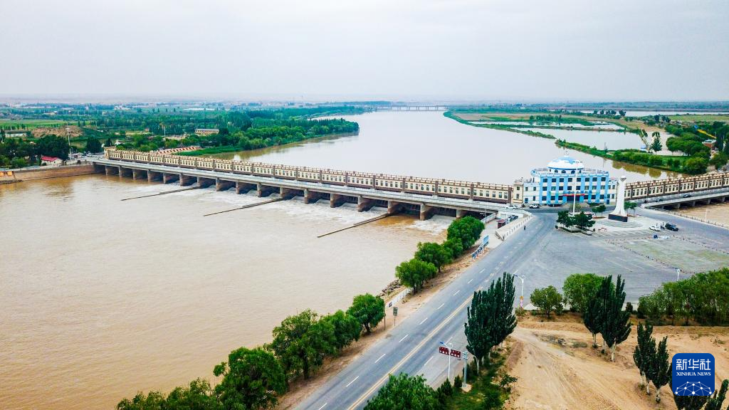 这是6月18日拍摄的巴彦淖尔市磴口县三盛公水利枢纽(无人机照片)。