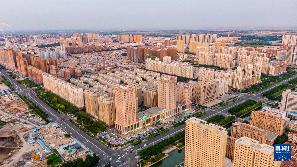 这是6月19日拍摄的巴彦淖尔市城市景观(无人机照片)。
