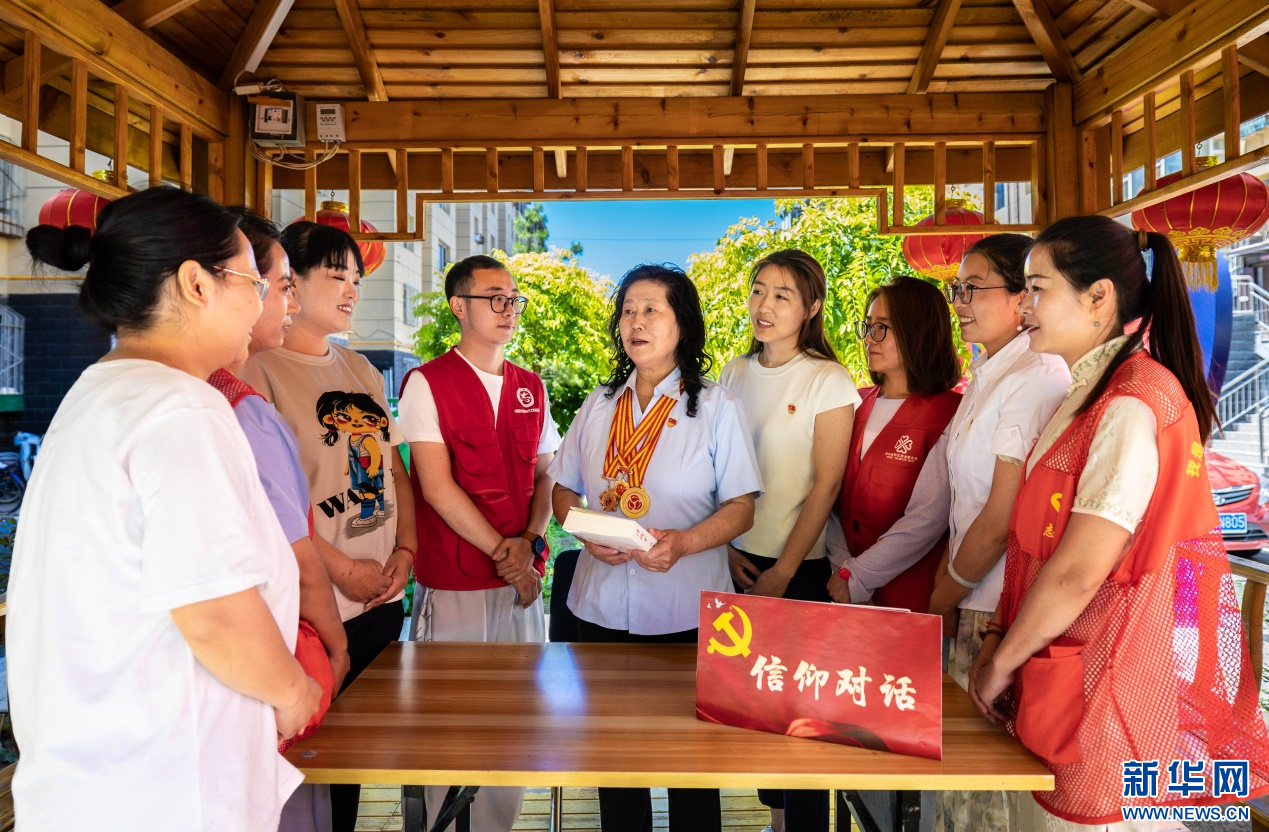 6月29日,老党员和青年党员在呼和浩特市玉泉区“新老党员‘信仰对话’”活动中交流入党心得,重温入党初心。新华网发(丁根厚 摄)