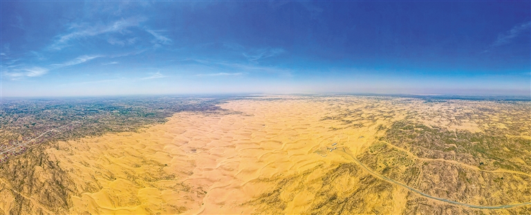 绿色,是生命与希望的象征,是片片沙海里最动人的色彩,更是内蒙古最美的底色。从沙进人退到绿进沙退,在不断染绿的沙海上,一幅人与自然和谐共生的美丽图景徐徐展开。