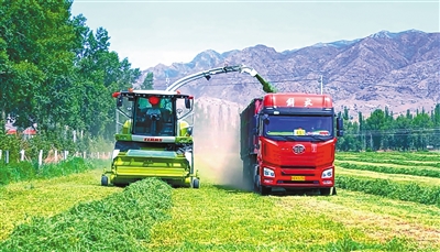 “紫花苜蓿全年能收割4茬,预计全年总产量可达5.5万吨。”土默特左旗国家现代农业示范区种植基地负责人告诉记者,种好草才能养好牛产好奶,这里主要规模化种植紫花苜蓿等优质牧草,并努力在高端养殖、饲料加工、生态旅游等方面形成种、养、加工及衍生产业同步发展的绿色产业链,与优然牧业智慧牧场、伊利全球智慧工厂紧紧相连,形成了“从一粒种、一棵草到一杯奶”的完整草牧乳产业链条。另外,该园区在现有基础上还发展设施农业,建设科普休闲观光采摘项目,打造学生劳动教育和研学实践基地,开发农旅项目等,实现三产融合,推动乡村振兴,有效带动了当地多种业态快速发展,农民收入水平不断提升。(记者 皇甫秀玲)