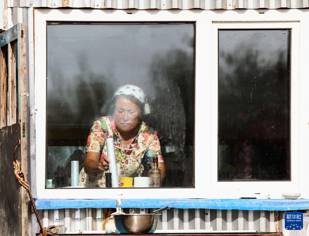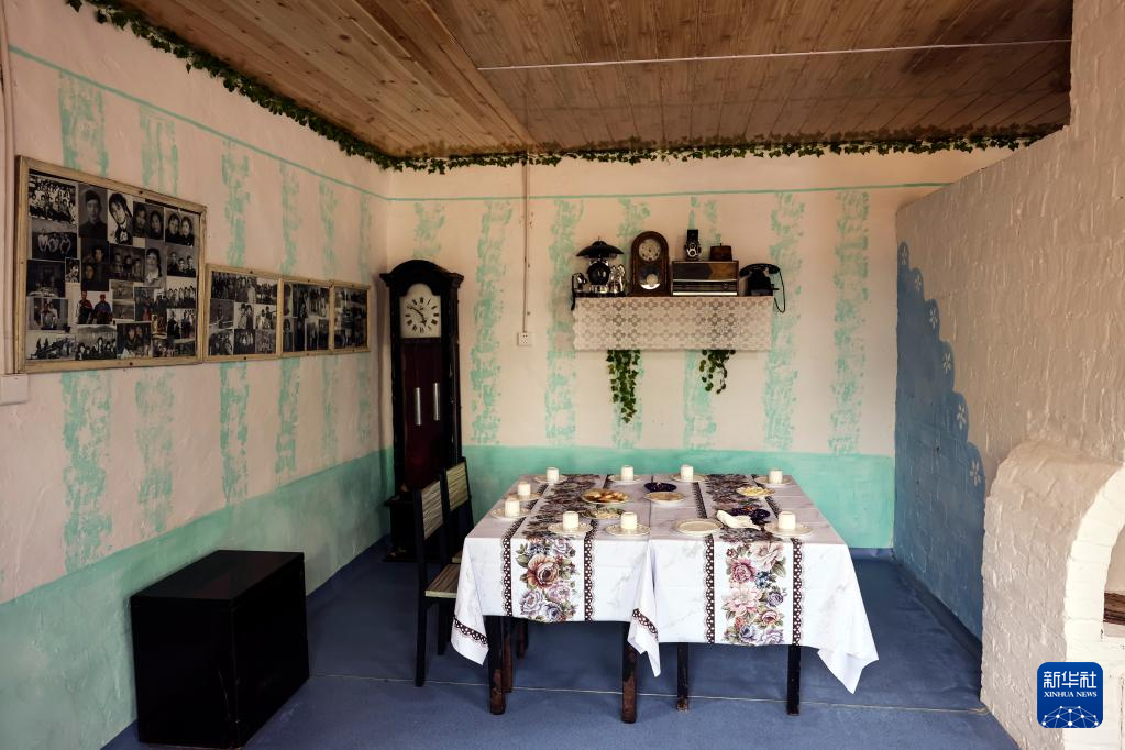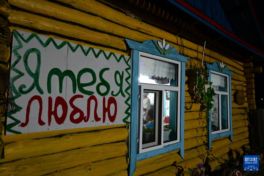 6月28日,游客在考占花家的俄式传统民居内用餐。