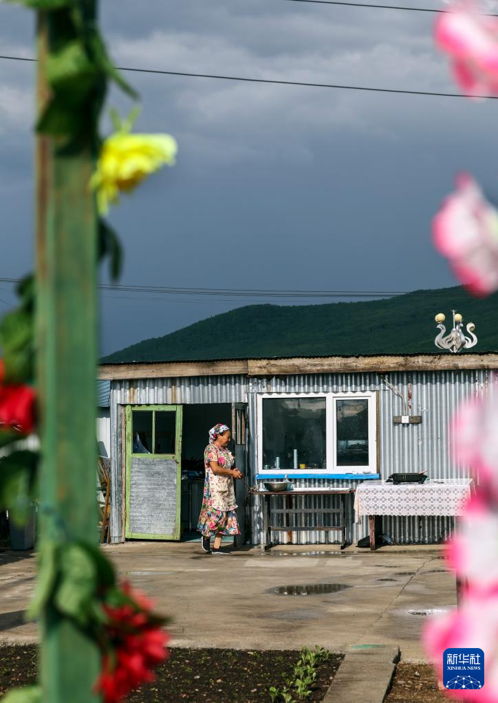 考占花家的俄式传统民居(6月28日摄)。