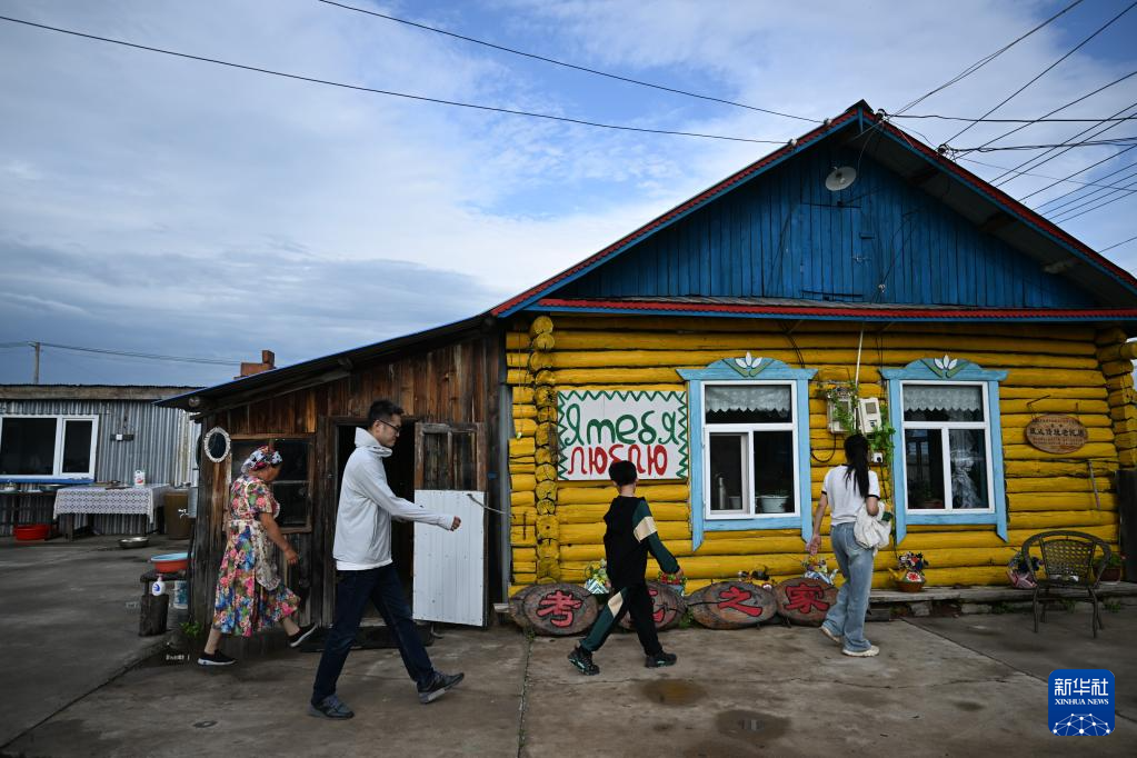 6月28日,游客们在考占花家参观俄式传统民居。