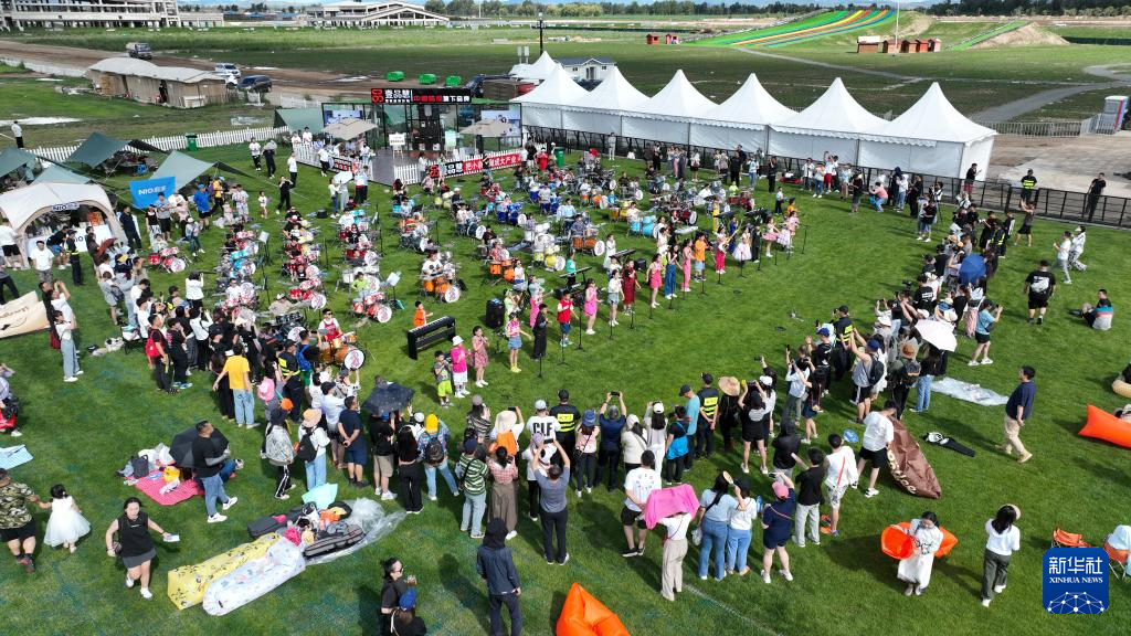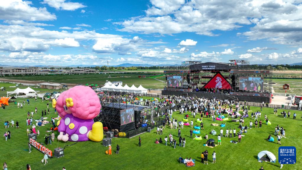 7月8日拍摄的呼和浩特音乐节现场(无人机照片)。