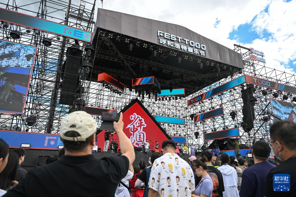 7月8日,游客在呼和浩特音乐节上观看演出。