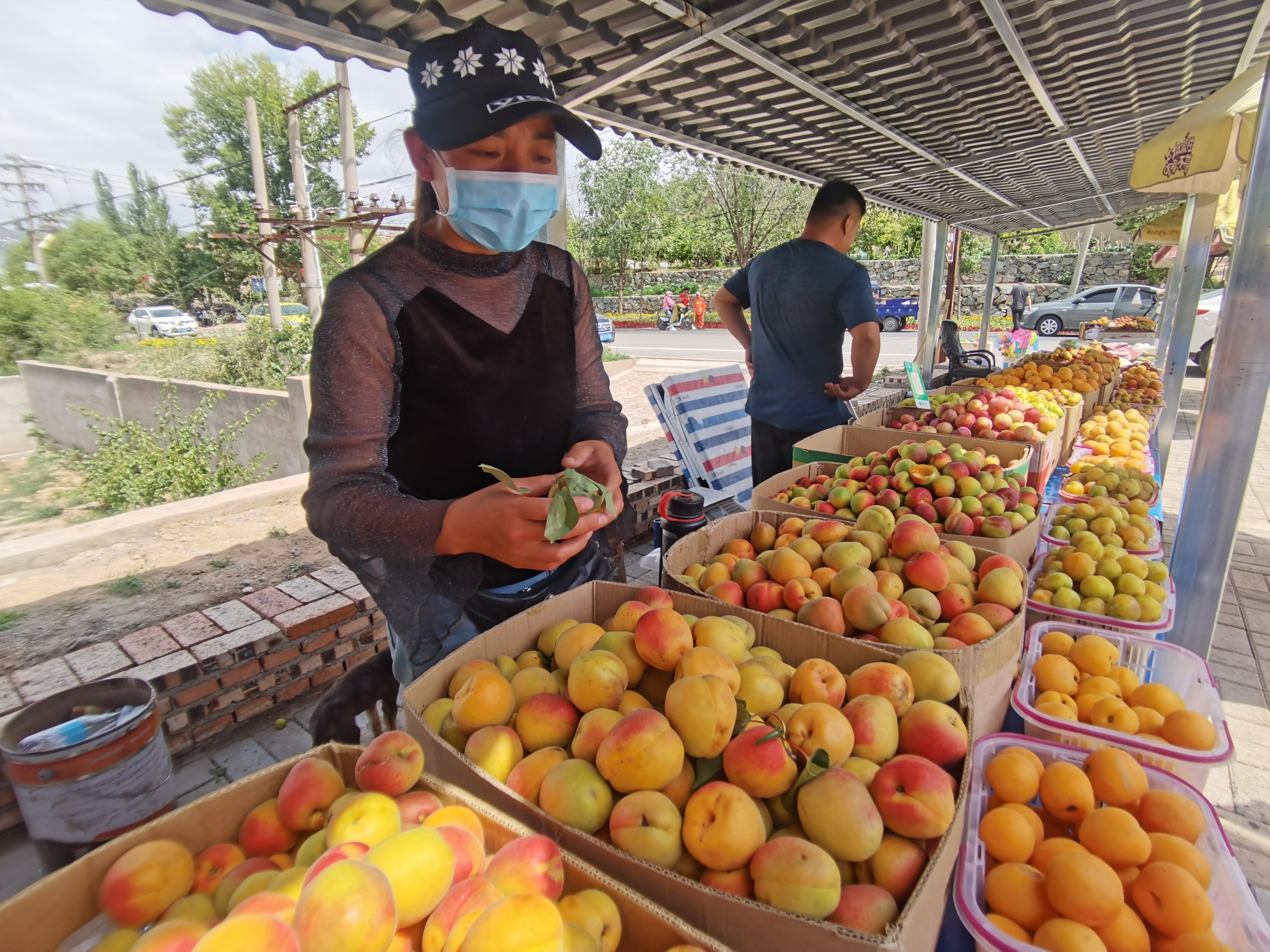7月11日,果农在东乌素图村售卖大杏。新华网徐红梅摄
