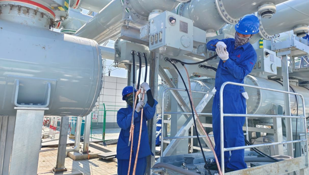 包头供电公司工作人员进行英华变500千伏GIS开关电气二次接线工作