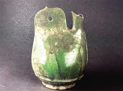 ▲辽绿釉瓷鸡冠壶。