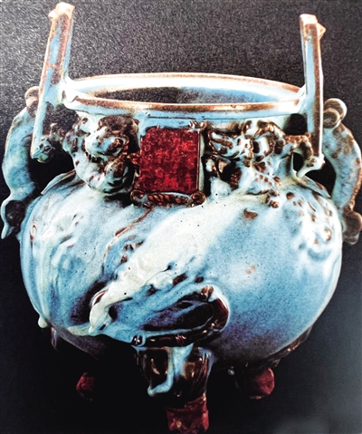 ▲白塔出土的钧窑香炉。