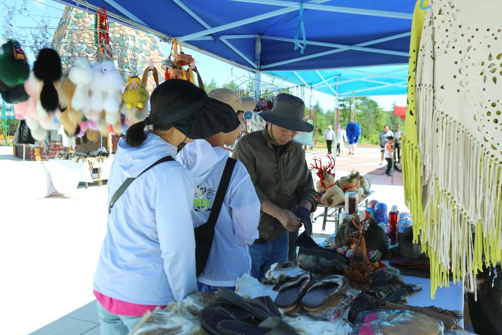 走进敖鲁古雅太阳城非物质文化遗产传承中心,桦树皮画、桦树皮盒、兽皮画、太阳花、根雕等鄂温克民族工艺品映入眼帘,“非遗+旅游”相融合的特色产品备受游客关注。根河敖鲁古雅旅游开发有限责任公司副总经理邓海红介绍说:“敖鲁古雅太阳城非物质文化遗产传承中心有六名非遗传承人入驻,他们在游客到来的时候,一边展示非遗技艺,一边售卖非遗产品,同时我们用非遗技艺开发了很多文创产品,使非遗文化注入了生命的活力。”