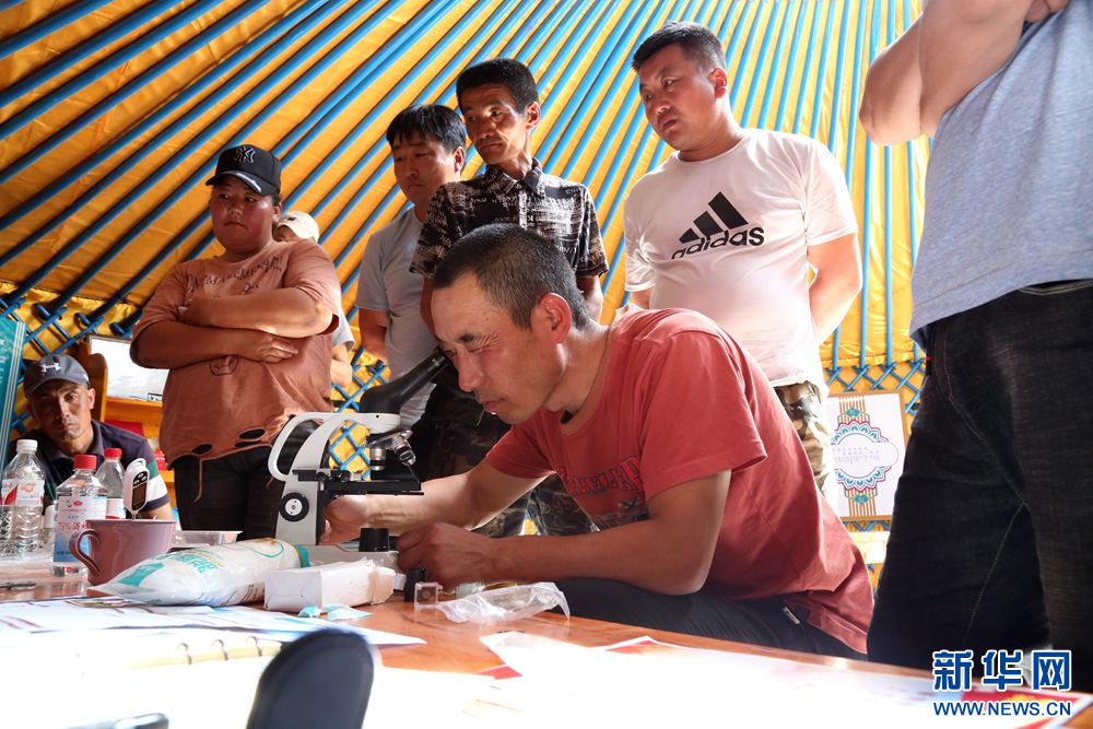 2023年6月15日,西乌珠穆沁旗乌兰哈拉嘎苏木达布希勒图嘎查党员中心户努日布仓为周边牧户开展冷配技术培训。新华网 发