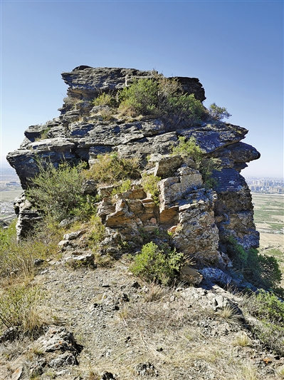 大青山上的圆柱形石崖。