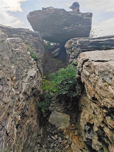 大青山上观天台人工开凿的通道。
