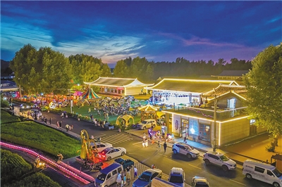 夕阳西斜,傍晚的三合村稻田栈道流光溢彩,勾勒出一幅迷人的稻田美景。广场上,乌兰浩特市首届三合稻田音乐节持续“火热”,田园风光与音乐节的时尚、活力、律动交错融合,点燃游客激情。