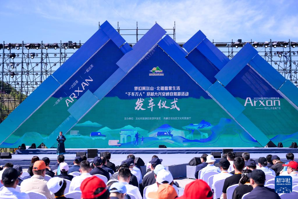 这是9月2日拍摄的“千车万人”穿越大兴安岭自驾游活动发车仪式现场。该活动是此次旅游大会的主体活动之一。