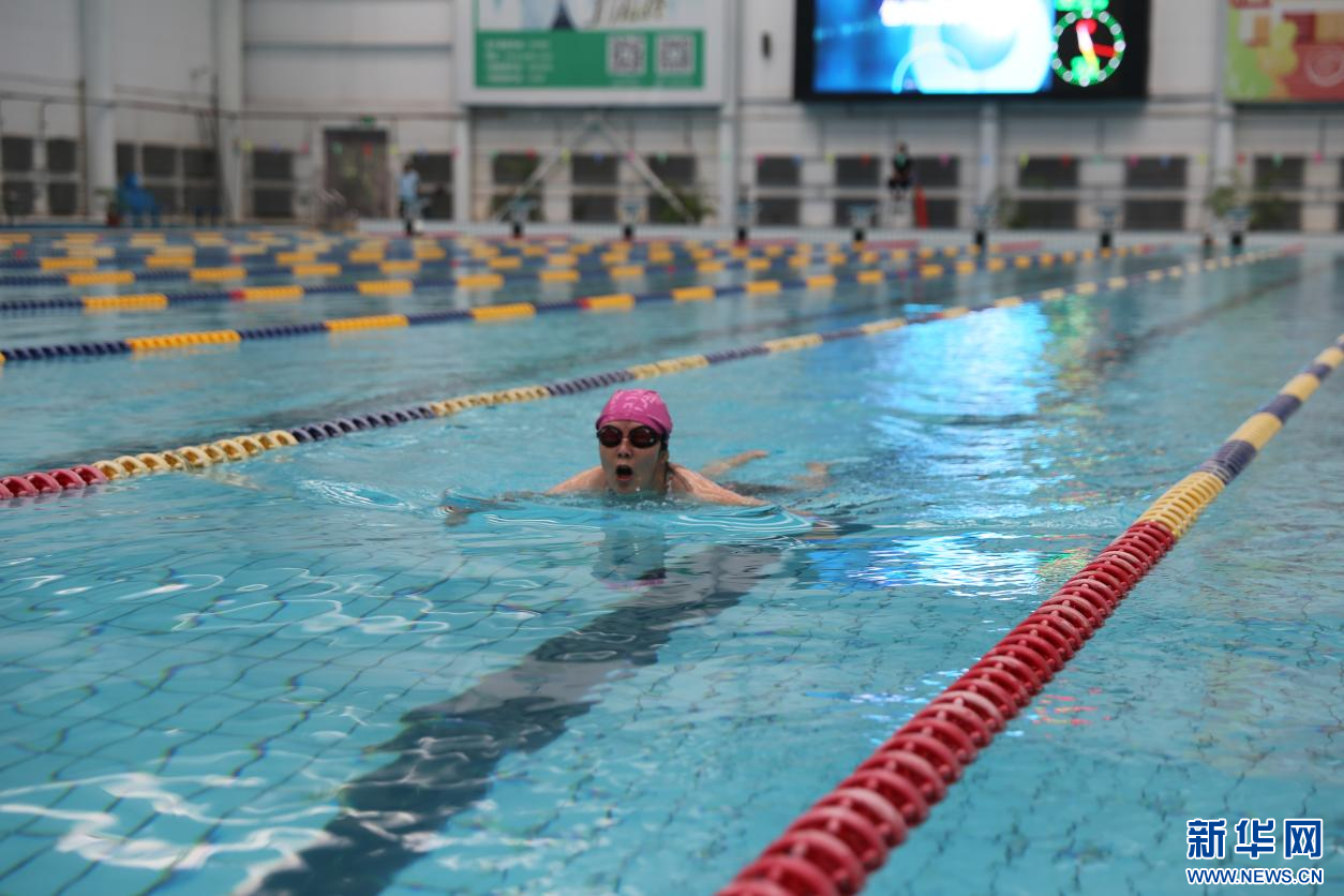 职工在包钢游泳馆游泳。新华网 李倩摄