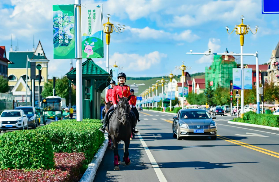 白狼镇是阿尔山旅游特色小镇。全面停伐以来,白狼镇一直在探索‘生态工业+特色农牧业+旅游’的融合发展之路,越来越多的当地居民从普通农民转向旅游从业者,形成了“放下斧头当导游,小康生活不用愁”的风气。