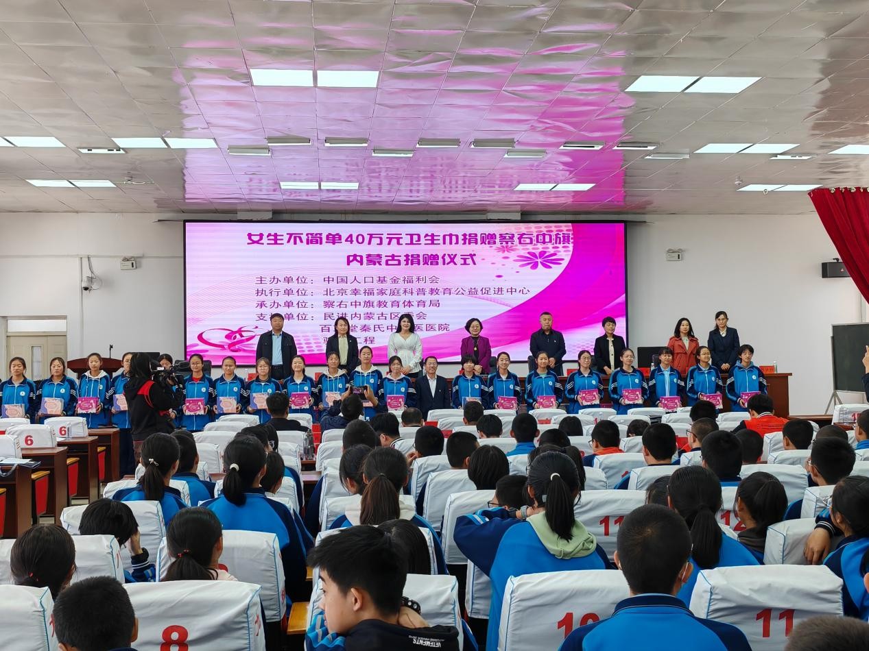 活动中,“女生不简单”公益项目向察右中旗捐赠40万元日常生理用品。北京妇女儿童社会服务发展促进会会长白亚琴和学生们一起交流,倾听孩子们的心声和关于青春的所需所想所思,学生们现场观看了科普知识动画,在轻松的氛围中收获了知识和快乐。