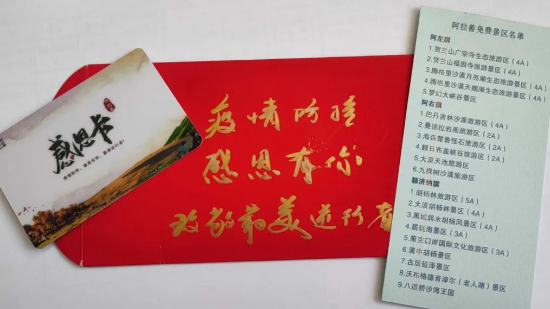 阿拉善感恩卡包含全盟各主要A级旅游景区首道门票免费,持卡人本人可凭此卡携带1名亲属,并享有3年内(2022年1月1日—2024年12月31日)不限次数免费游览政策,由景区工作人员进行身份审核后进入景区游览。