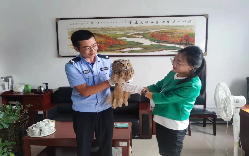 9月22日,鄂尔多斯市乌审旗公安局嘎鲁图第二派出所接到了S242线公路养护人员张某的求助电话。接到报警后嘎鲁图第二派出所民警与生态环境食品药品犯罪侦查大队民警立即赶赴现场。到达现场后,生态环境食品药品犯罪侦查大队民警通过查阅资料认真对比照片初步认定该鸟是“雕鸮”,俗称“恨狐”,属于国家二级保护动物,是保护庄稼的能手。