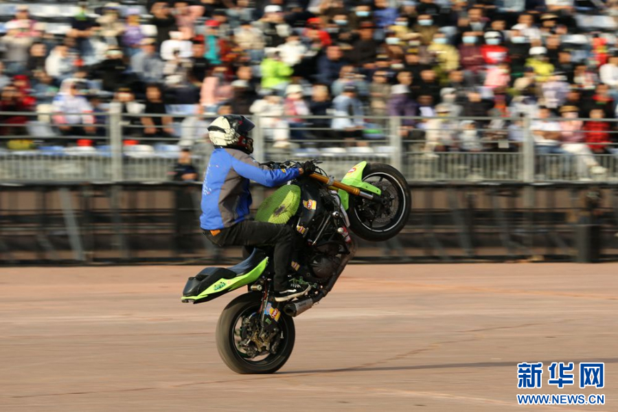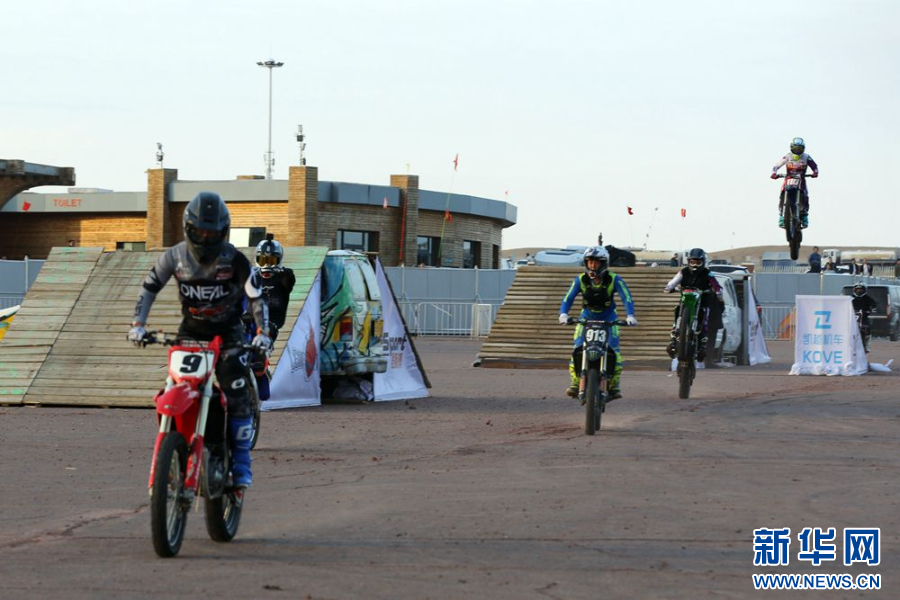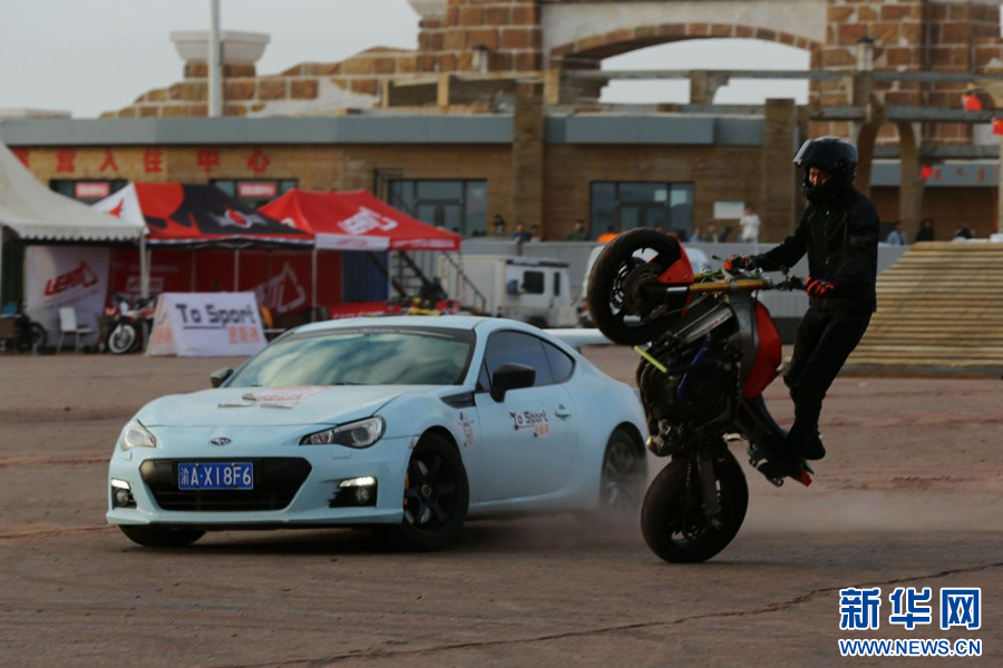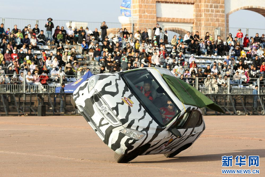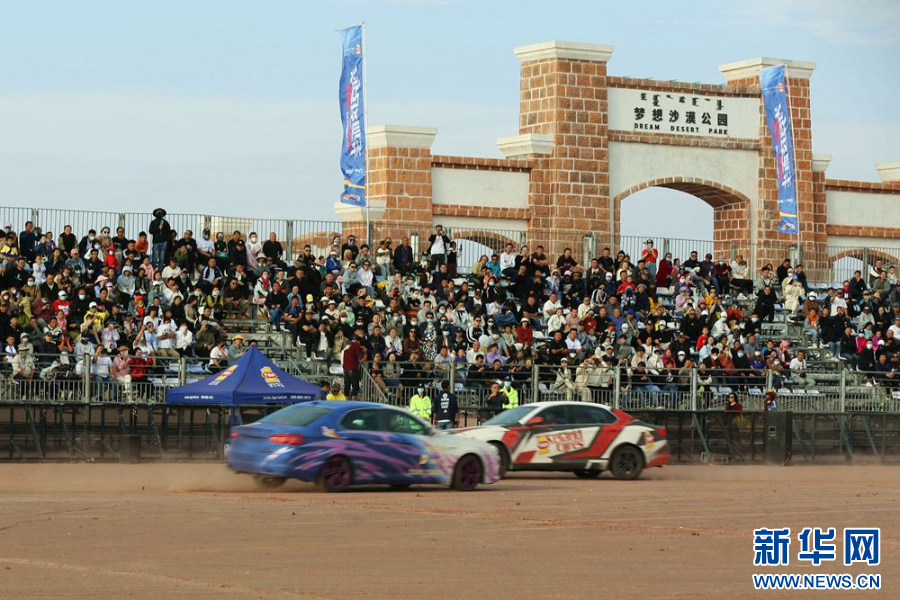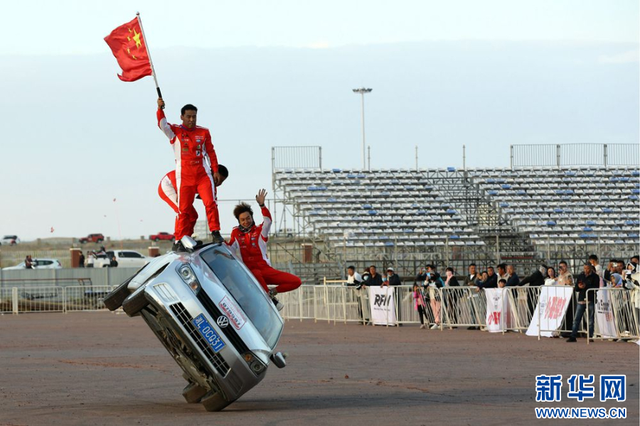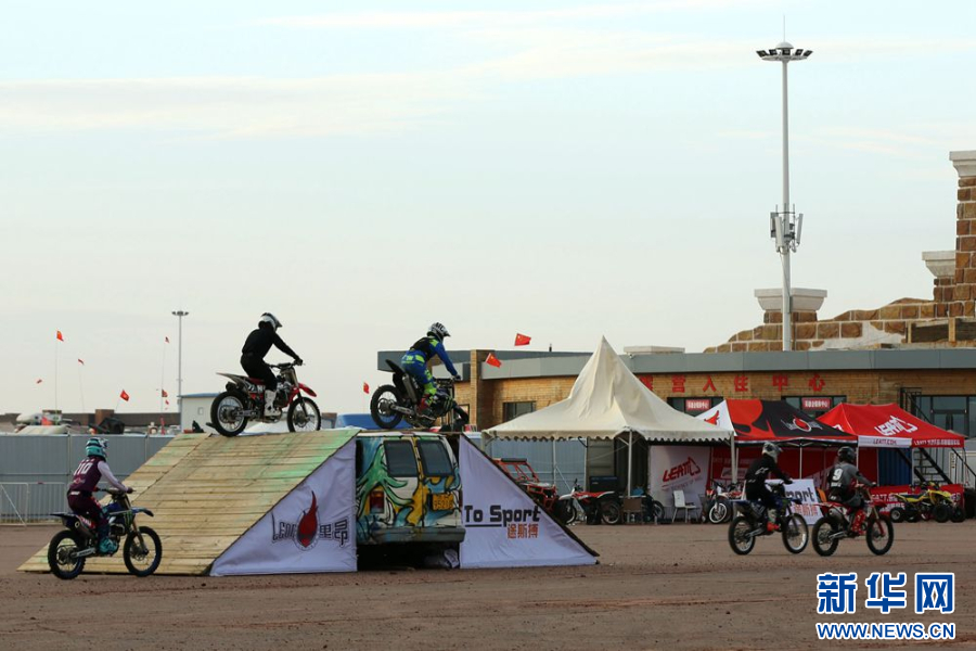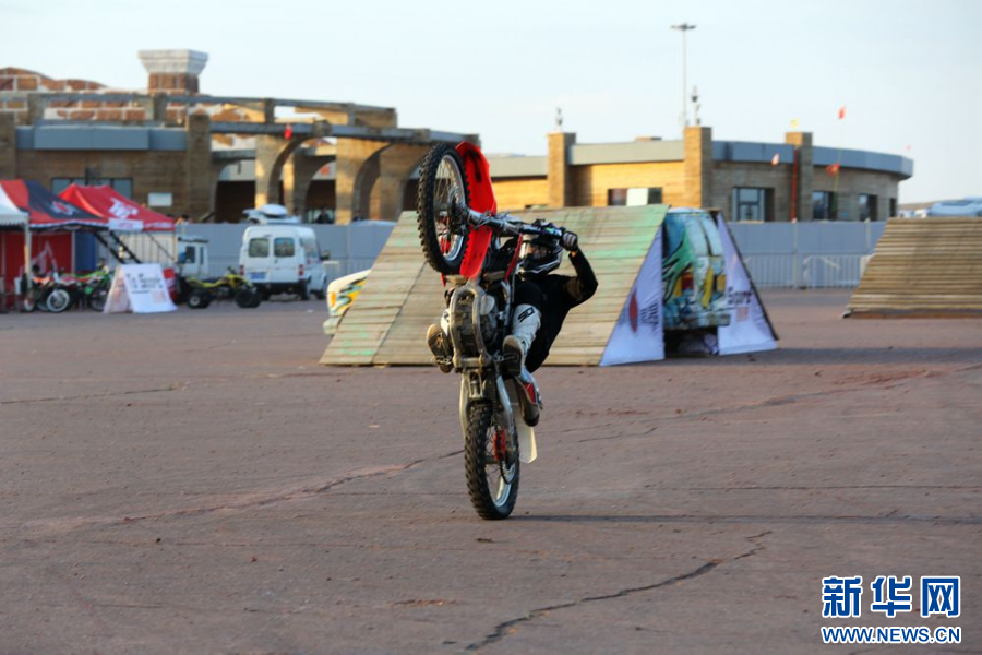 10月1日,在位于内蒙古阿拉善左旗境内的梦想沙漠公园内进行的“汽摩”特技表演现场。新华网 石毅 摄
