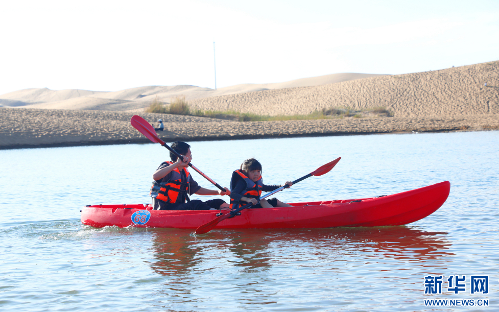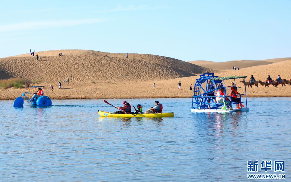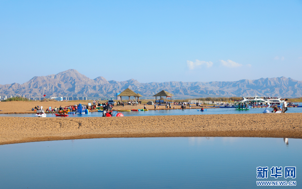 乌海市地处内蒙古自治区西部,黄河穿城而过,黄河海勃湾水利枢纽工程建成后形成的乌海湖与沙漠相连,有了“半湖碧水半湖沙”的美景。中秋国庆黄金周期间,游客纷纷来到乌海湖休闲度假旅游区,体验沙漠里看“海”的别样浪漫。