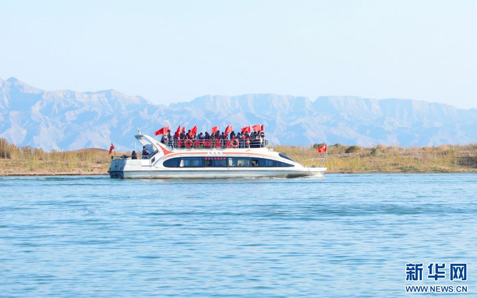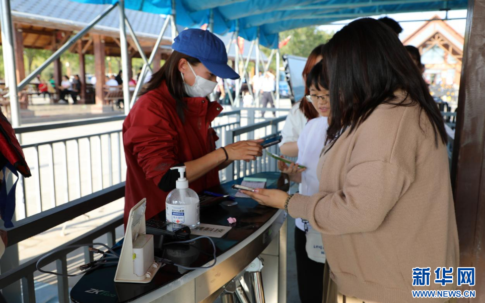 10月3日,游客在乌海市乌海湖码头购票登船。新华网 发(王悦微 摄)