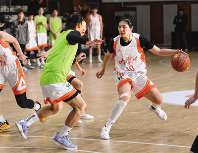 10月13日,内蒙古农信女篮队员进行队内对抗训练。 记者 孟和朝鲁 摄
