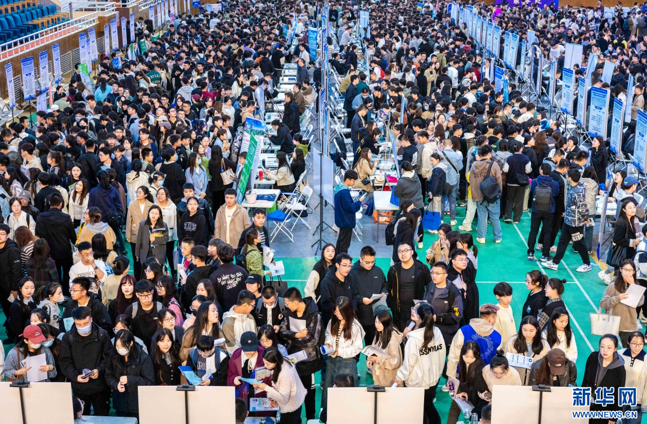 10月15日,众多求职者在内蒙古自治区秋季校园招聘活动现场寻找合适的岗位。新华网发(丁根厚 摄)
