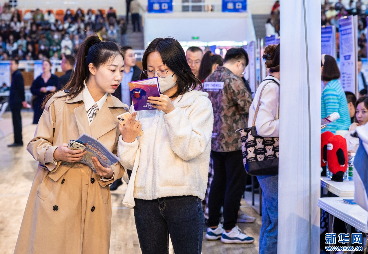 10月15日,求职者在内蒙古自治区秋季校园招聘活动现场寻找合适的岗位。新华网发(丁根厚 摄)