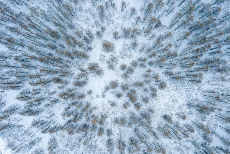 轻雪浅映林海间。