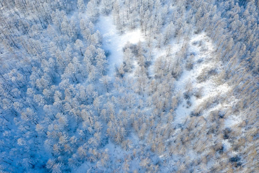 大兴安岭晨起雾凇。