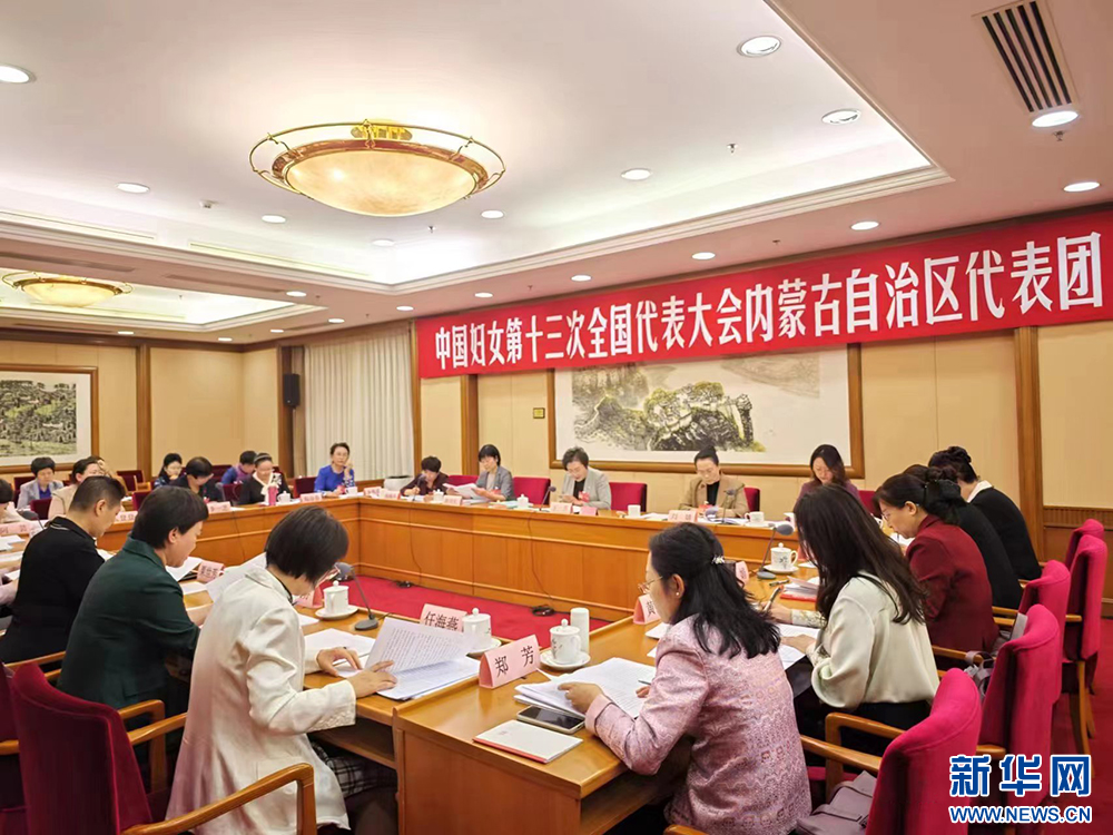 10月23日下午,中国妇女第十三次全国代表大会内蒙古自治区代表团分组讨论现场。