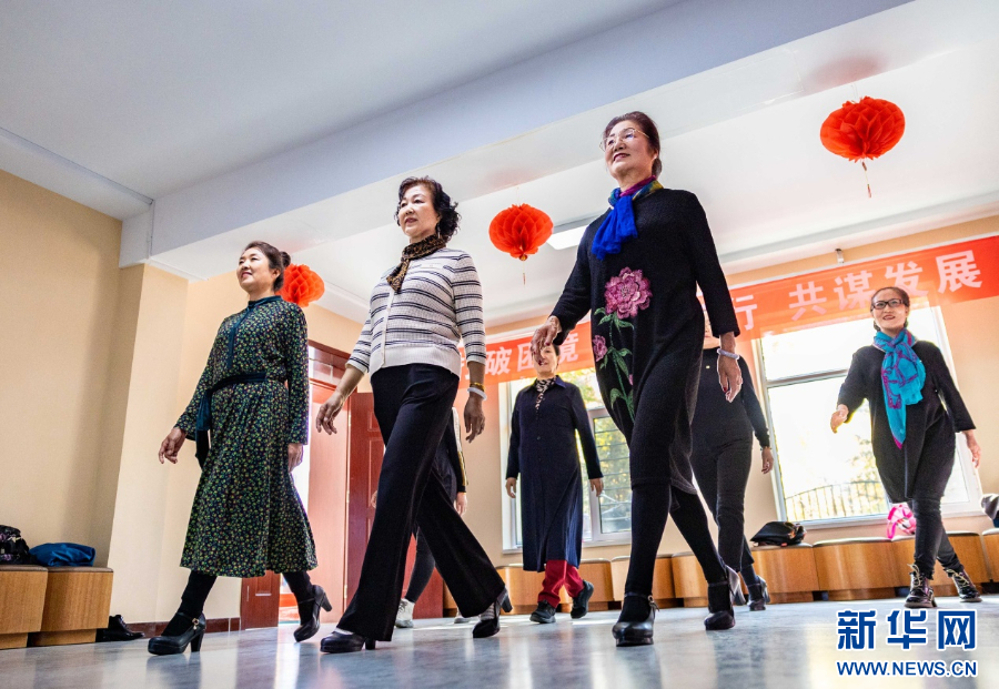 10月26日,老人们在练习模特造型。新华网发(丁根厚 摄)
