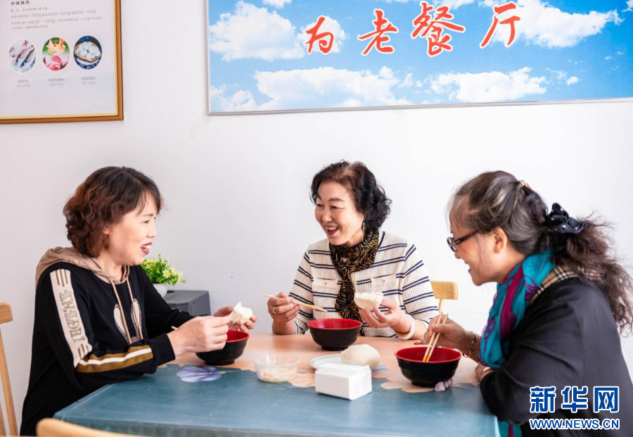 10月26日,老人们在“为老餐厅”内吃早餐。新华网发(丁根厚 摄)