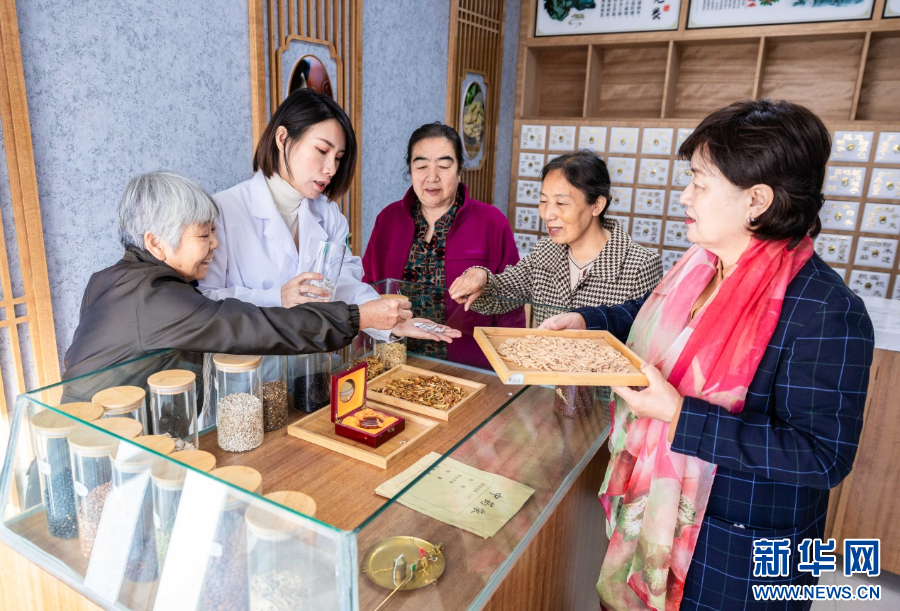 10月26日,医护人员在为老人们讲解秋冬季养生知识。新华网发(丁根厚 摄)