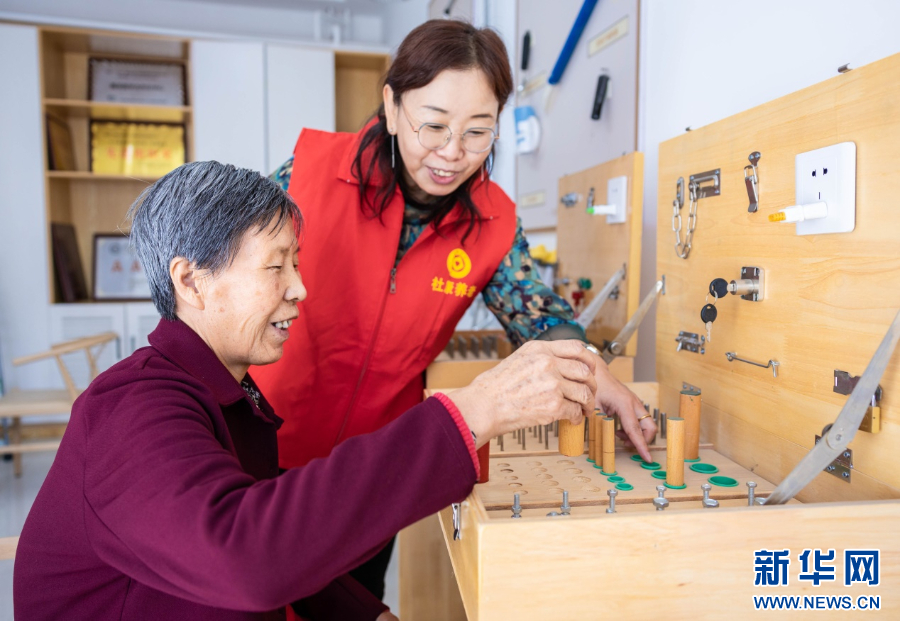 10月26日,志愿者协助老人进行能力评估。新华网发(丁根厚 摄)