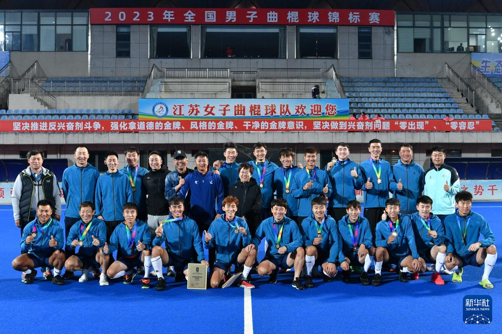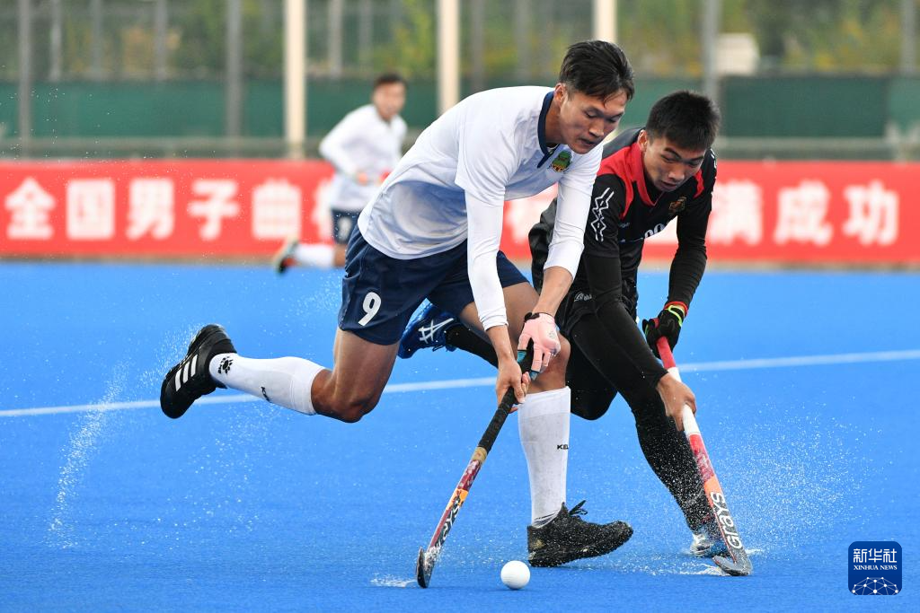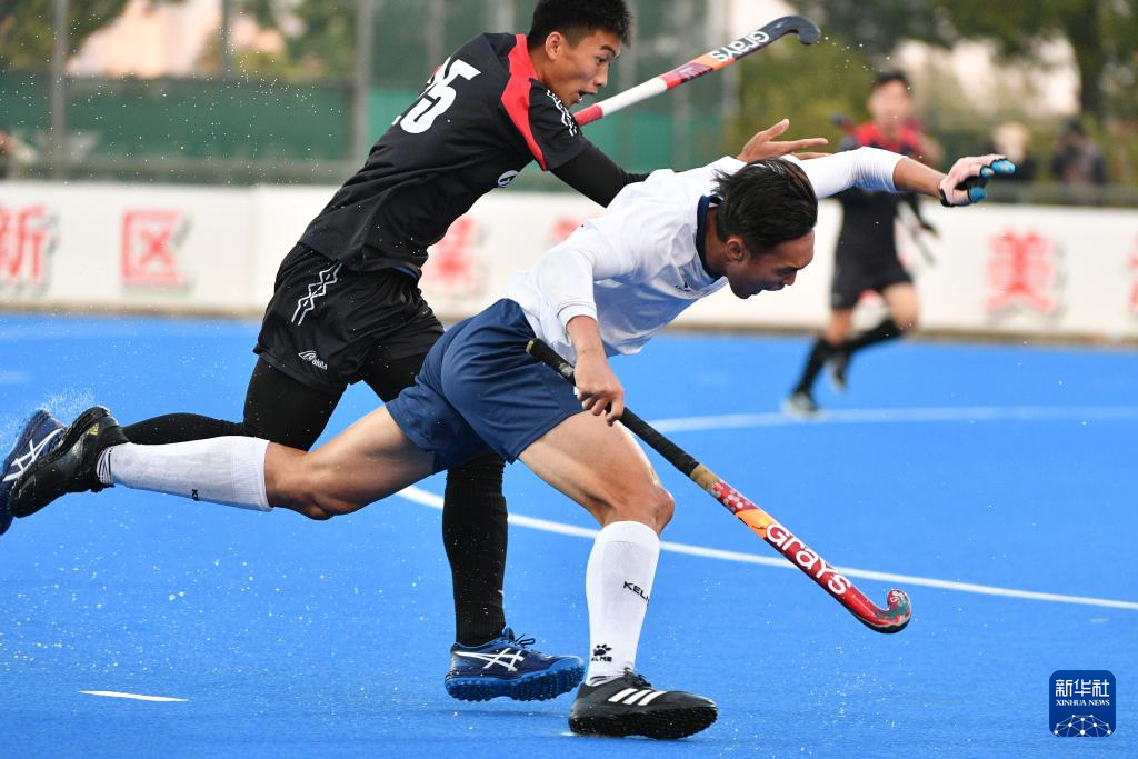 当日,在江苏常州举行的2023年全国男子曲棍球锦标赛决赛中,内蒙古队以2比0战胜广东队,夺得冠军。