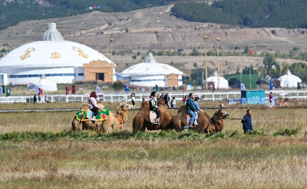 10月4日,游客在呼和浩特市敕勒川草原游玩。新华社记者 刘磊 摄