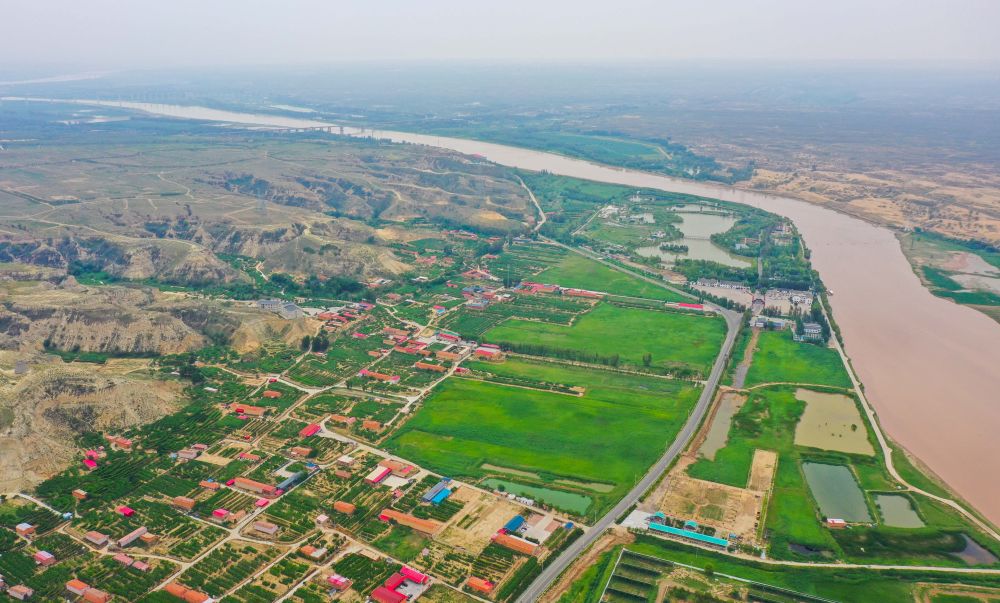这是2020年7月16日拍摄的黄河托克托县段的黄河生态走廊建设工程(无人机照片)。新华社记者彭源摄