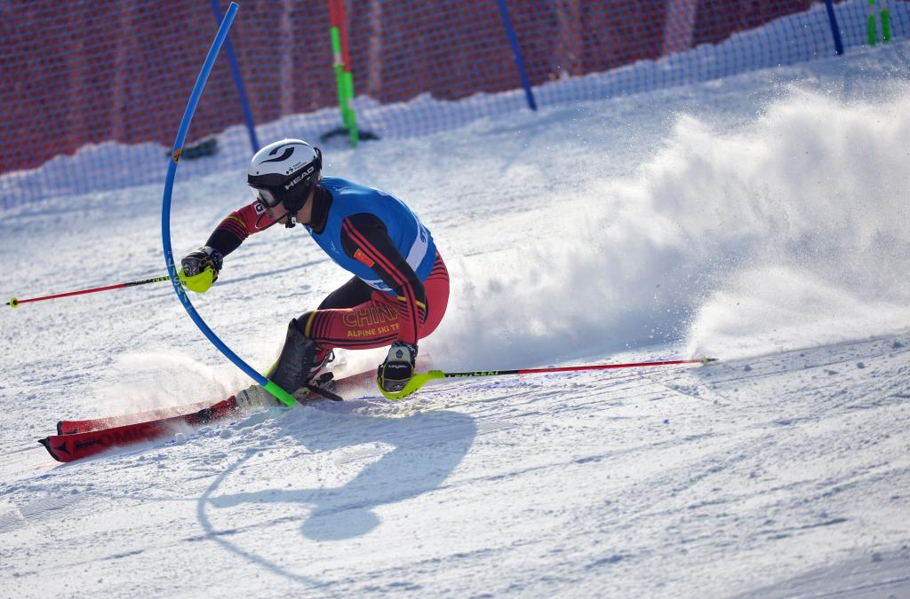 2019年12月29日,选手在内蒙古自治区喀喇沁旗美林谷滑雪场比赛。新华社记者 徐钦 摄