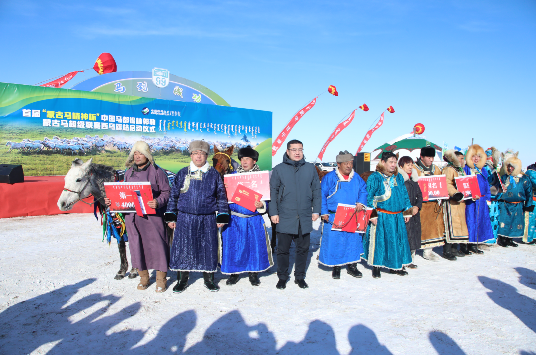 联赛启动仪式上,勒勒车、骆驼骑手、驼撬缓缓驶入,身着冬季民族服饰的模特神采奕奕,“白马王子”和“白马公主”表演靓丽灵动,乌兰哈拉嘎苏木13个嘎查的200余位骑手身着盛装、跨马齐奔、角逐较量,形象诠释了新时代一往无前的蒙古马精神,200余名慕名而来的游客在现场体验“锡盟马超”的独特魅力。