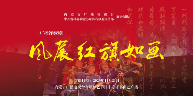 11月21日,由内蒙古广播电视台联合锡林郭勒盟苏尼特右旗委宣传部共同打造的广播剧《风展红旗如画》在内蒙古广播电视台奔腾融媒客户端、评书曲艺广播同步首播。