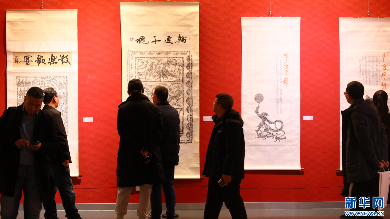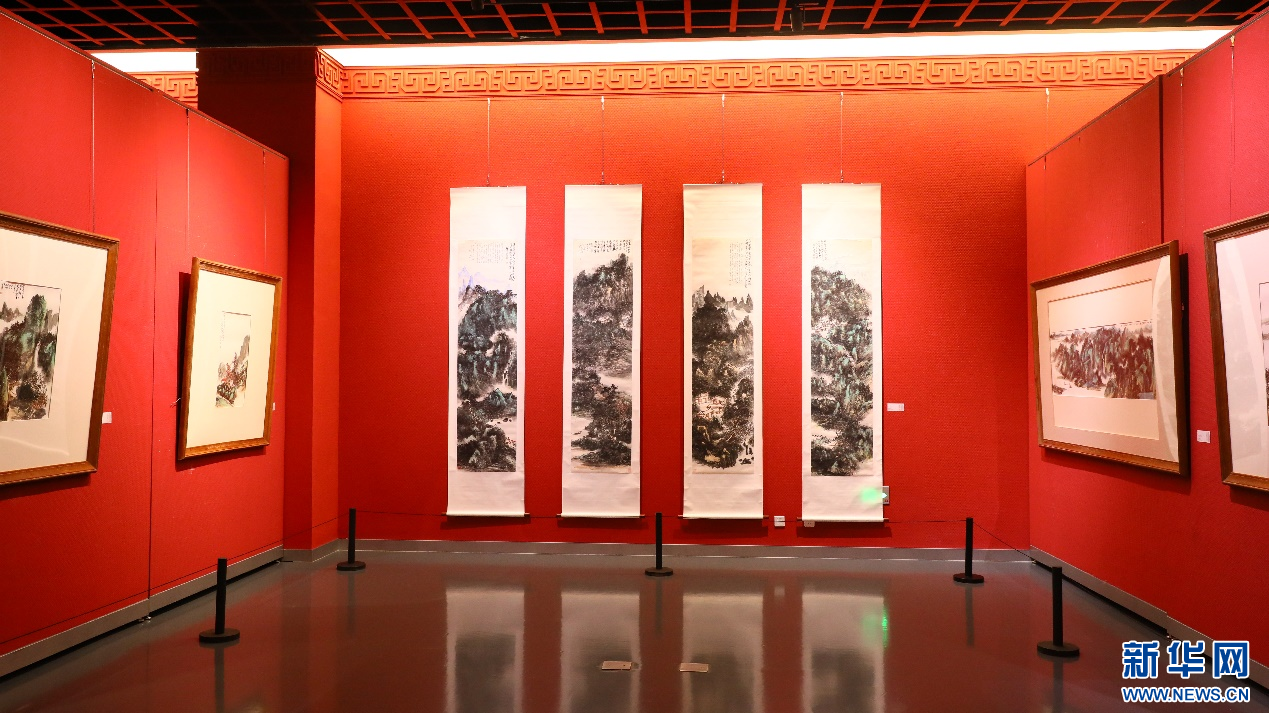 李政恩书画篆刻作品展上的水墨画作品。新华网发(郝睿喆 摄)