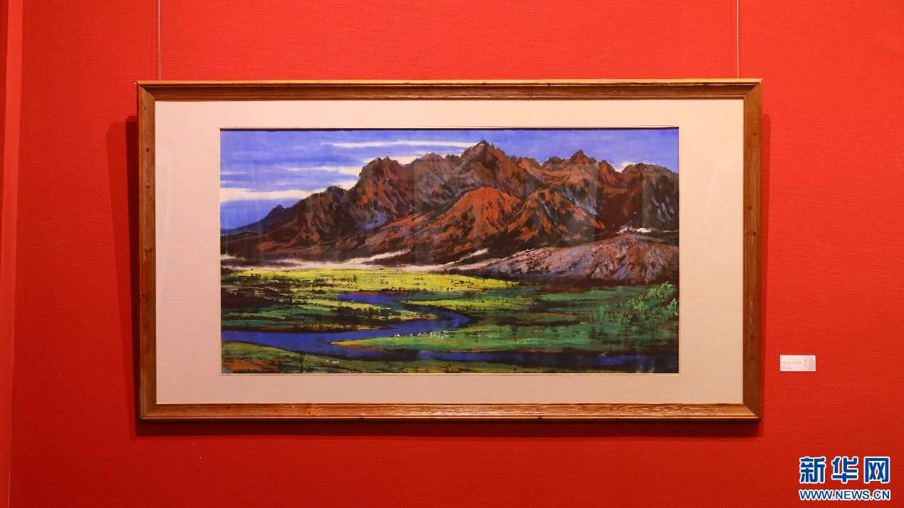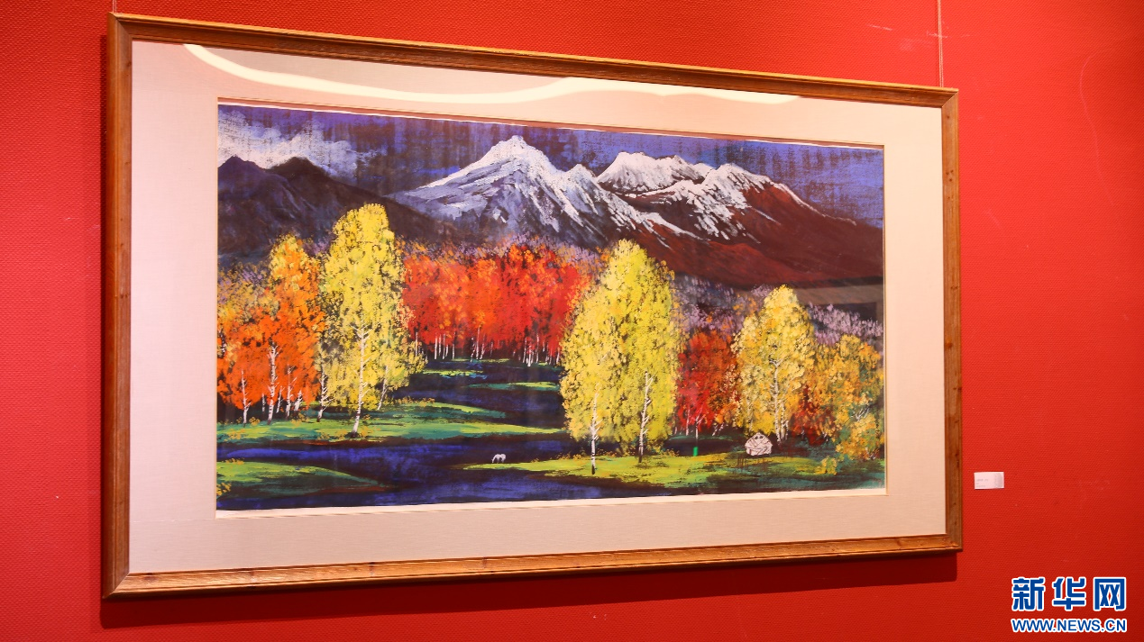 李政恩书画篆刻作品展上的彩墨画作品。新华网发(郝睿喆 摄)