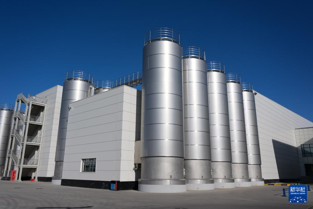 这是11月23日拍摄的呼和浩特市伊利现代智慧健康谷液态奶全球智造标杆基地的储奶罐。