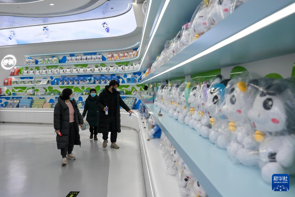 11月23日,在呼和浩特市伊利现代智慧健康谷智造体验中心,游客在挑选乳制品和文创产品。