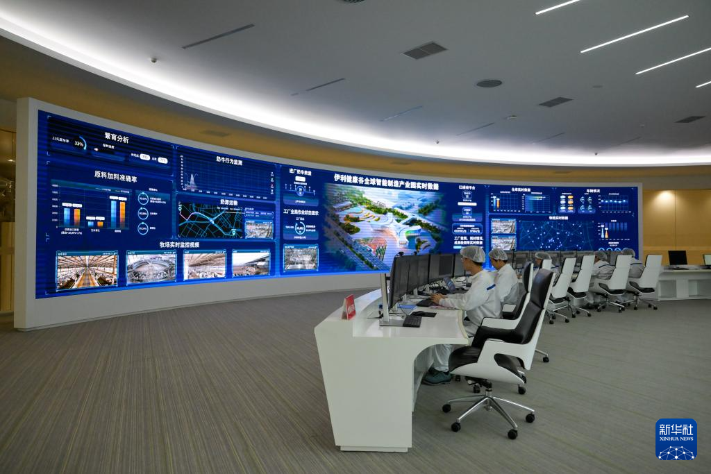 11月23日,在呼和浩特市伊利现代智慧健康谷液态奶全球智造标杆基地,工人在监测设备运行。